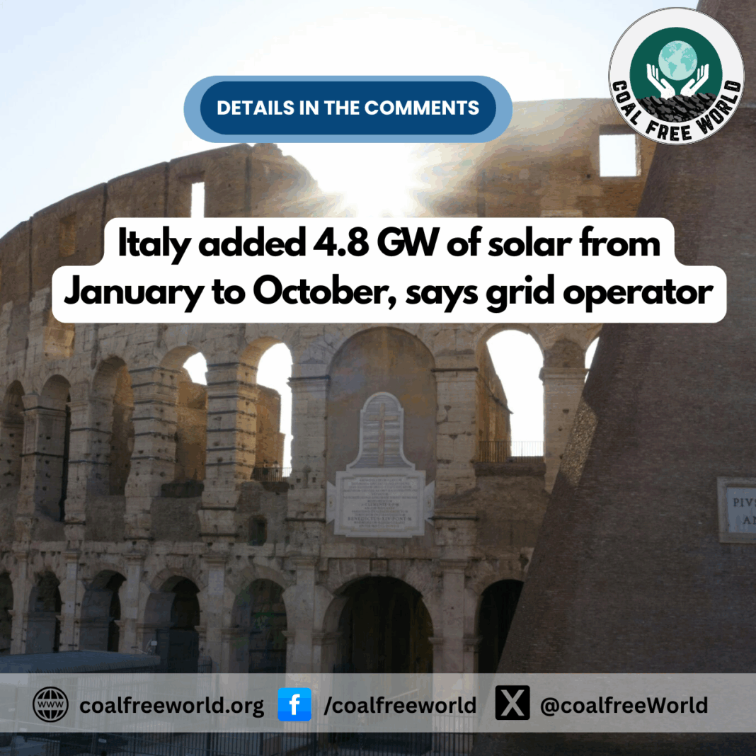 Italy added 4.8 GW of solar from January to October, says grid operator